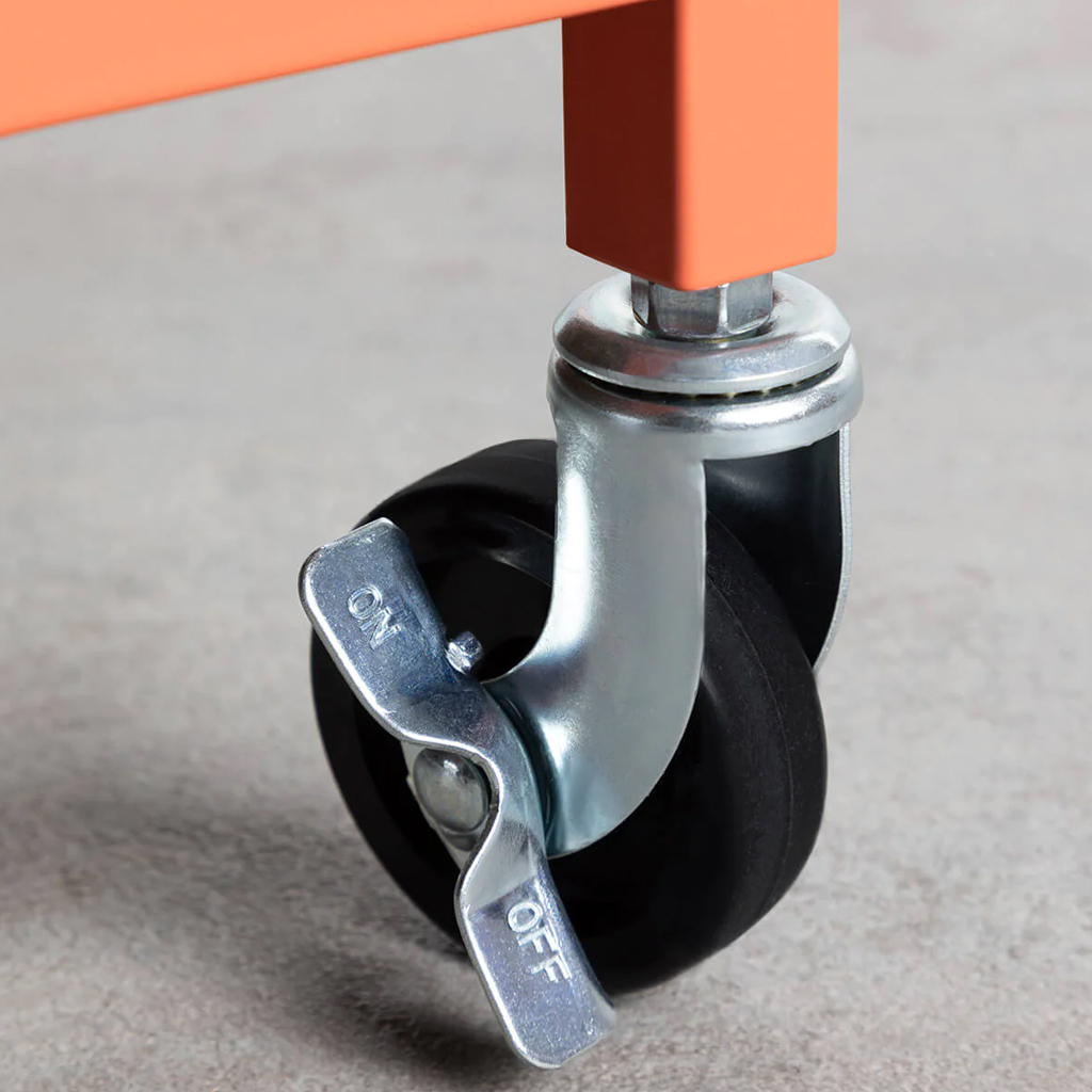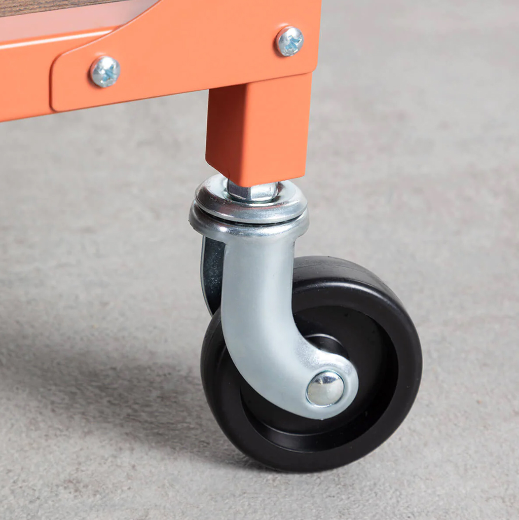 SpazioLuzio - MESA DE CENTRO DE ACERO Y MDF CON RUEDAS 80x55x45cm Color Naranja Claro