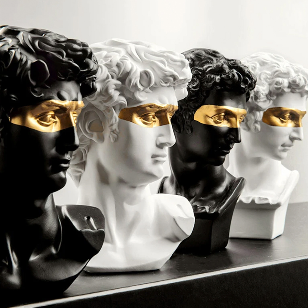 Esculturas y figuras de resina, busto de 15cm, estatua nórdica para decoración del hogar, sala de estar, escritorio, estantería, yeso blanco David