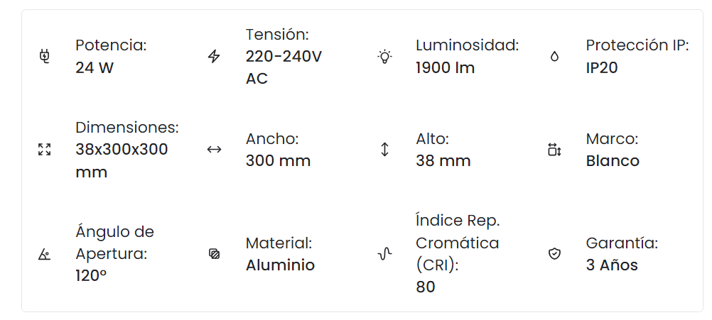 El Plafón LED 24W Cuadrado de potencia 300x300 mm es un elemento de iluminación LED muy extendido en todo tipo de espacios interiores.