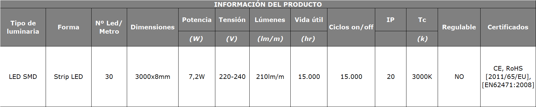 DESCRIPCIÓN:SE ENVIAN 3 UNIDADES X KIT TIRA LED 3 METROS BLANCO CALIDO 3000K CON TRANSFORMADOR RECORTABLE Y ENLAZABLE NINE&ONECARACTERÍSTICAS: • Tipo: LED SMD: • Potencia: 7,2W• Luminosidad: 210lm/m• Temperatura: 3000K• Duración: 15,000 hr EL PAQUETE INCLUYE:• 3X